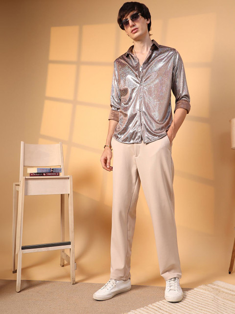 Campus Sutra Men Comfort Spread Collar Solid ...