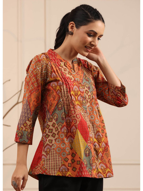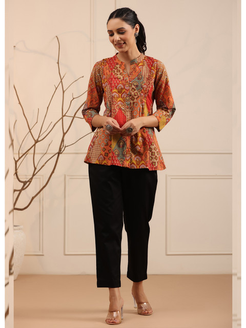 Okay, this top might look a bit dull to many people, but I like my clothes a bit earthy. This top has that right kind of artsy vibe to it, pair it up with plain trousers and voila! The fit is definitely loose and the material is just right for Indian…