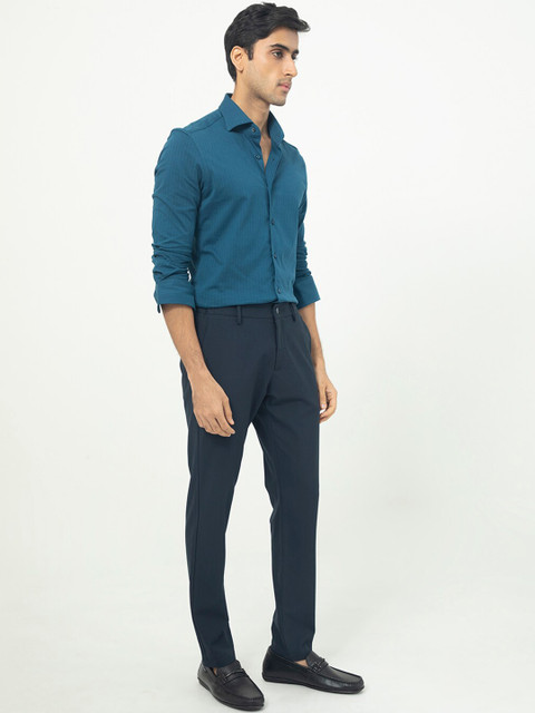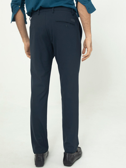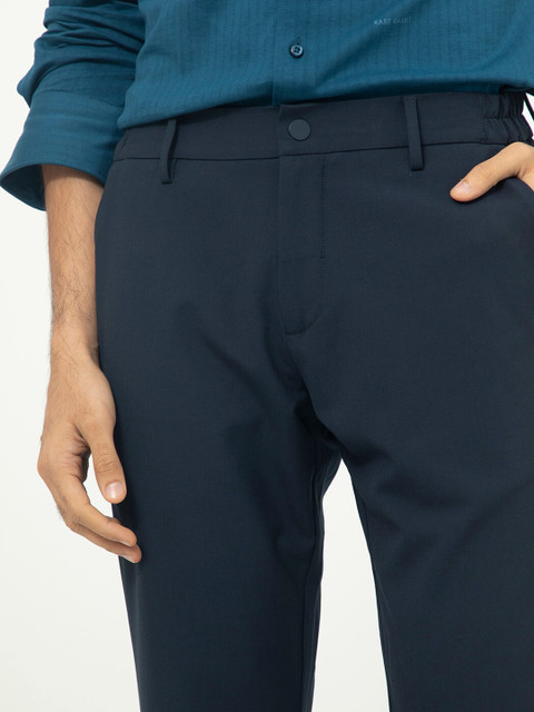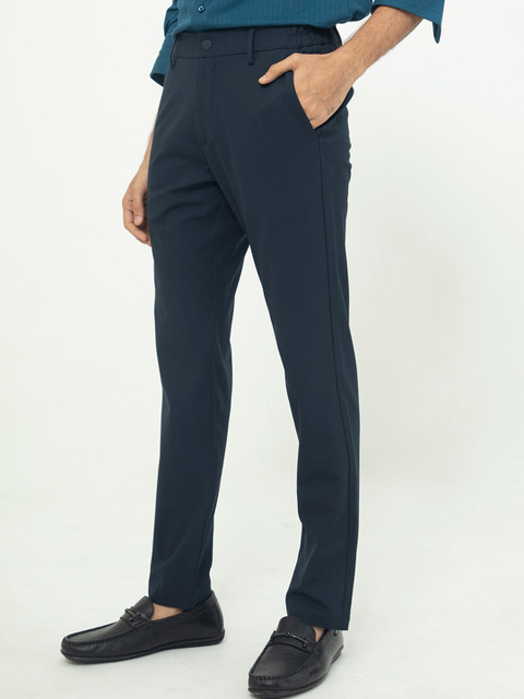 - Navy blue woven trousers